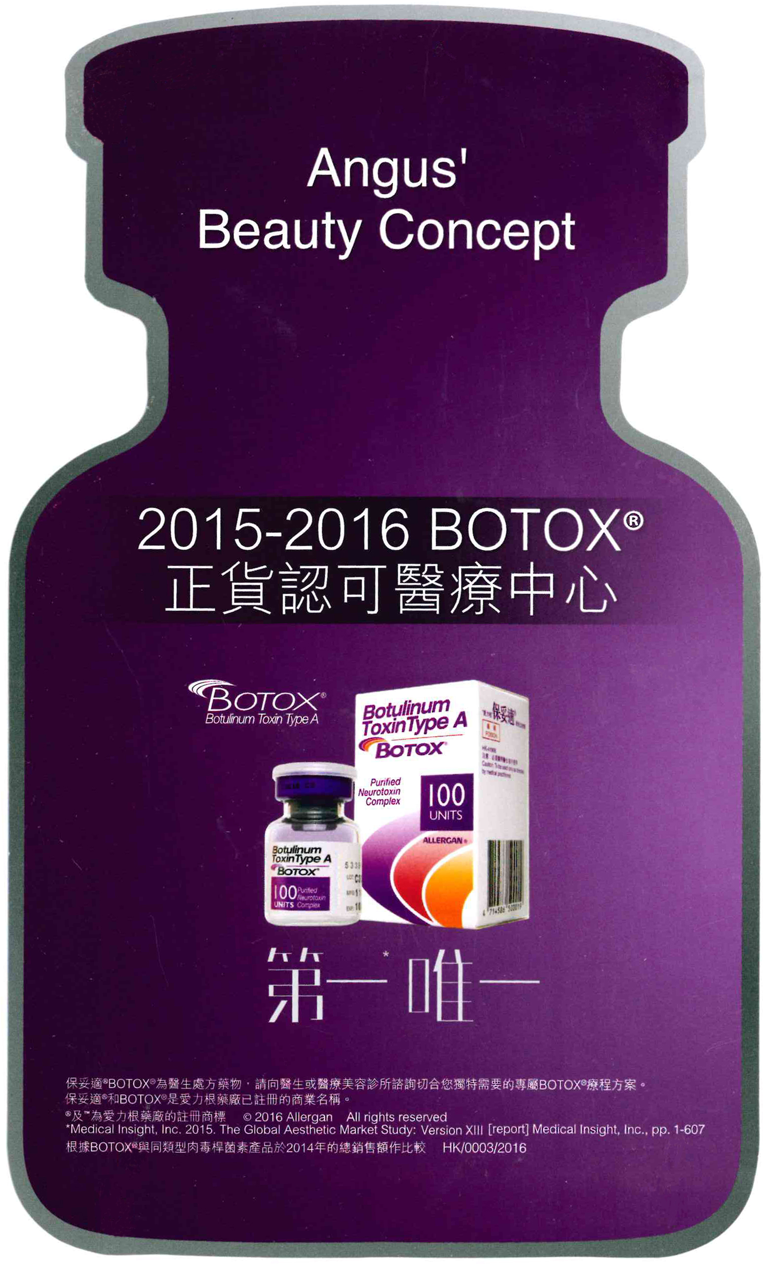 Botulinum toxin is a neurotoxic protein produced by the bacterium Clostridium botulinum. It can effectively block the nerve impulses and temporarily paralyze the muscles that cause wrinkles. Being approved by the FDA and HKDH for cosmetic injection, Botox® has been commonly used in cosmetic surgeries for over 10 years, testifying its effectiveness and safety.